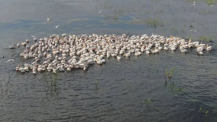 Огромную стаю розовых пеликанов заметили на курганском озере. Фото
