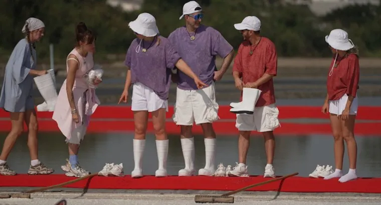 Очередной этап соревнований преподнес участникам весьма необычный сюрприз. Звезды должны были продемонстрировать чудеса координации, расположившись на песчаном пляже спиной к спине и перемещаясь подобно крабам. Главной задачей было не только сохранить равновесие, но и ловко подхватывать ногами разноцветные мячи, транспортируя их в специальную корзину.