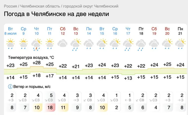 Фото: скрин с сайта «Гисметео» https://www.gismeteo.ru/weather-chelyabinsk-4565/2-weeks/