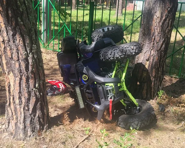 В Курганской области водитель квадроцикла на бешеной скорости влетел в дерево. Фото