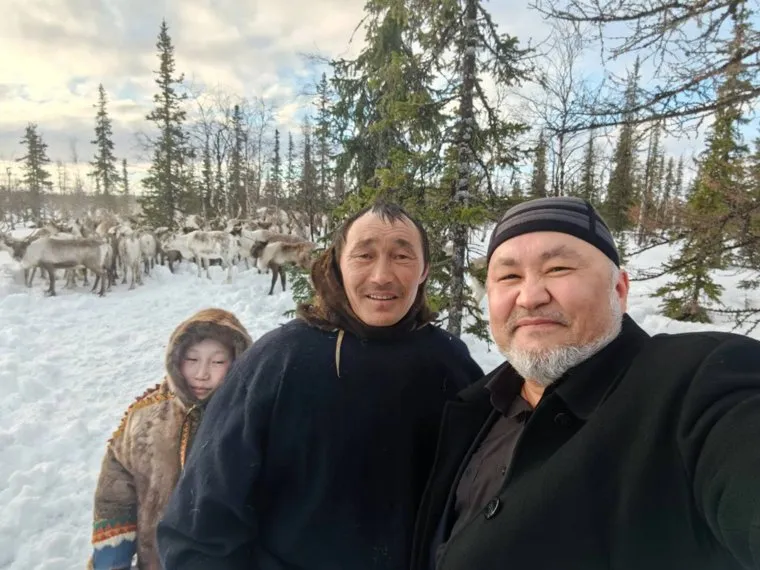 Эдуард Яунгад с оленеводами Приуральского района ЯНАО