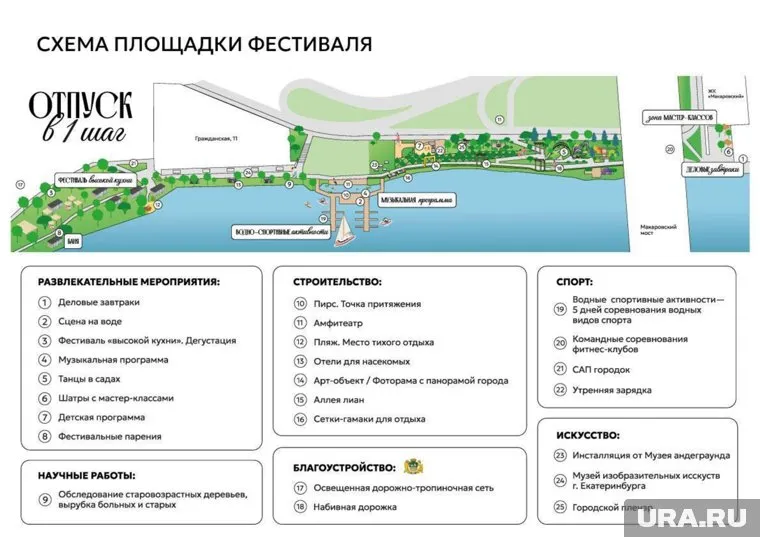 На фестивале ландшафтного искусства «Атмофест» в Екатеринбурге будет работать 25 площадок. Среди интересных — сцена на воде, отели для насекомых, место для банного парения, пляж и арт-объект. Концепцией будущего фестиваля с URA.RU поделились организаторы.