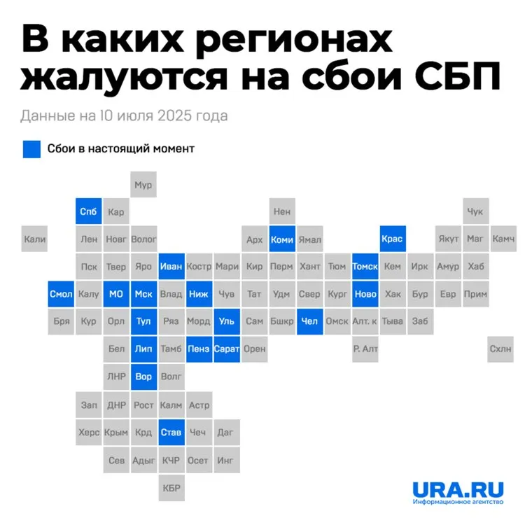 Сегодня, 10 июля, в России зафиксированы масштабные перебои в работе Системы быстрых платежей (СБП). Пользователи из разных регионов жалуются на невозможность совершать переводы, ошибки при авторизации в банковских приложениях и задержки обработки операций. О сроках восстановления работы сервиса не сообщалось. В каких регионах произошли сбои в работе СБП и что стало их причиной — в материале URA.RU.
