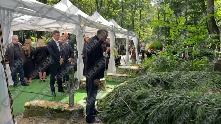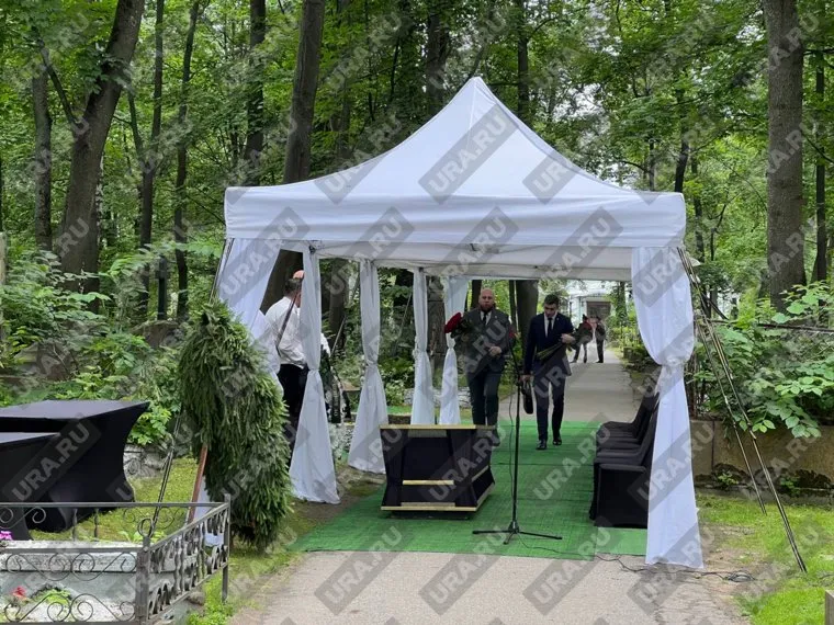 12:04 Похоронный кортеж прибыл. Сама церемония пока не началась, сообщает корреспондент URA.RU c места событий.