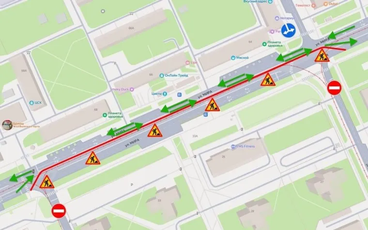 В связи с проведением работ по реконструкции трамвайных путей на улице Мира в июле 2025 года вводятся временные ограничения движения транспорта. Они будут действовать на участке от дома №26 до дома №70 по улице Мира.
