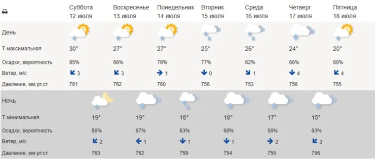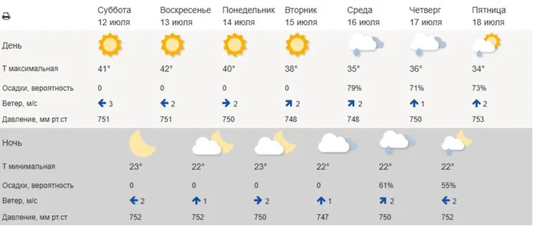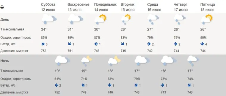 Однако, по словам научного руководителя Гидрометцентра Романа Вильфанда, несмотря на жару, в Краснодарском крае 12 июля ожидаются сильные ливни, грозы, град и порывы ветра до 25 м/с. Он отметил, что аномально жаркая погода сохранится в регионе до конца недели.