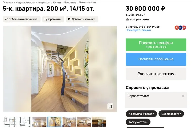 Фото: скрин сайта «Авито», https://www.avito.ru/chelyabinsk/kvartiry/5-k._kvartira_200_m_1415_et._2027886454