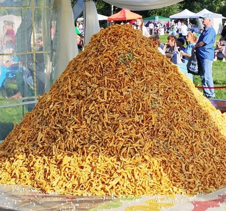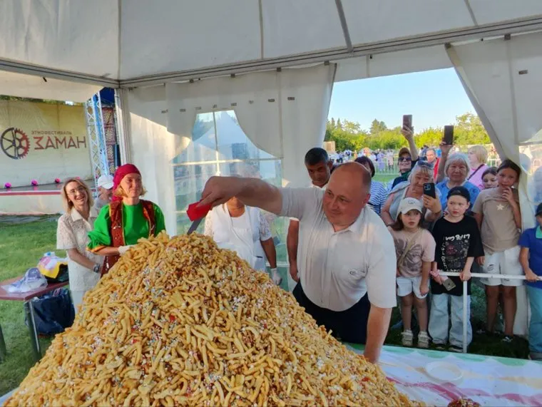 Чак-чак весом 280 килограммов приготовили 12 июля на фестивале «Заман» в поселке Метлино Озерского городского округа Челябинской области. Автор кулинарного изделия работала три дня, потратив десятки килограммов продуктов. Об этом в своем telegram-канале сообщил глава муниципалитета Сергей Гергенрейдер.