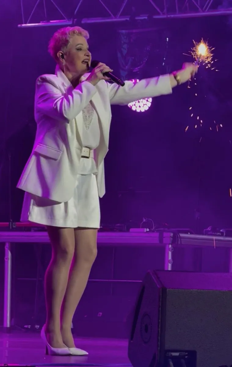 Маргарита Суханкина выступала на «Славянском базаре в Витебске» в рамках ночного концерта. На сцену звезда вышла почти в два часа ночи. Маргарита была в белоснежном костюме с шортами.
