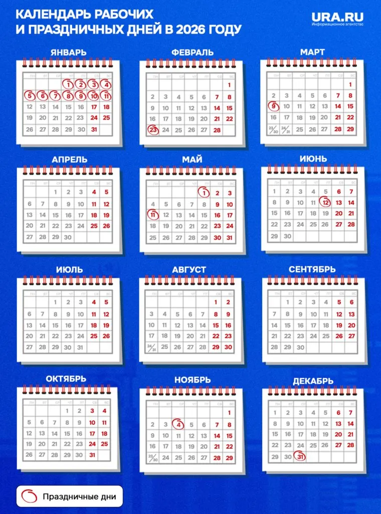 В 2026 году россиян ожидает семь сокращенных рабочих недель. Правительство окончательно утвердило календарь праздничных дней в 2026 году. Новогодние выходные продлятся рекордные 12 дней. Они станут самыми продолжительными за многие годы.
