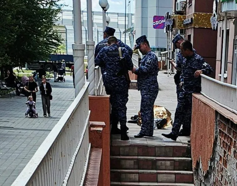 На фото виден отряд Росгвардии — силовики находятся на месте происшествия. В региональном Депздраве смерть человека подтвердили. «Вызов поступил 14 июля в 12:21, прибытие бригады скорой медицинской помощи — 12:27. Медики констатировали смерть пациента», — сообщили URA.RU в пресс-службе ведомства. Информации о том, что предшествовало смерти мужчины, пока нет.