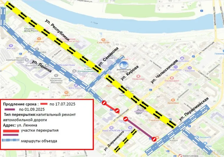 «Информационное сообщение. В связи с выполнением работ на объекте „Капитальный ремонт по улице Ленина. Второй этап“ планируется продление сроков перекрытия на автомобильной дороге по улице Ленина на следующих участках: от Кирова до Челюскинцев — срок продлен до 17 июля, от Челюскинцев до Первомайской — срок продлен до 1 сентября», — сообщили в администрации.