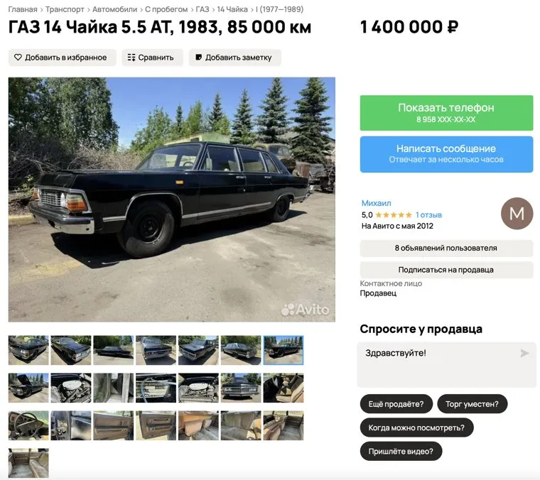 Фото: скрин сайта «Авито», https://www.avito.ru/chelyabinsk/avtomobili/gaz_14_chayka_5.5_at_1983_85_000_km_7460346491