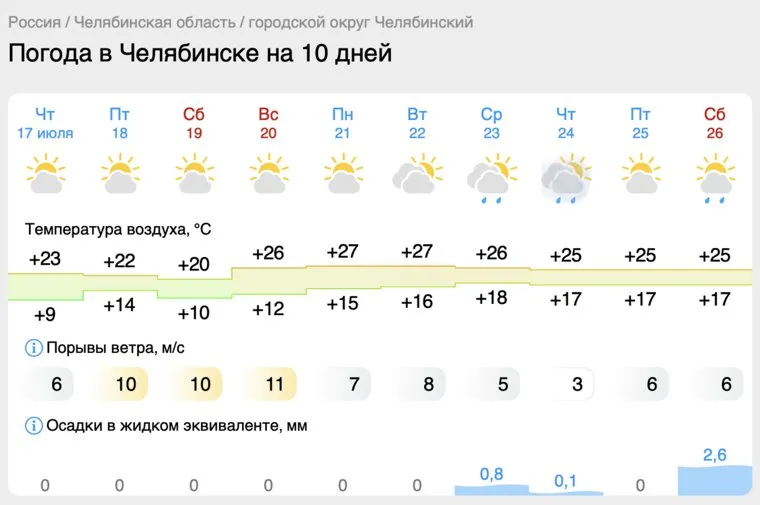 Фото: скрин сайта «Гисметео», https://www.gismeteo.ru/weather-chelyabinsk-4565/10-days/