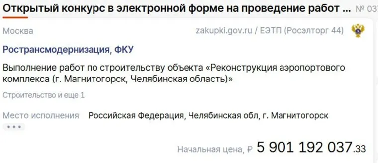 В мае 2022 года «АльмакорГруп» заключила госконтракт на реконструкцию аэропортового комплекса города Магнитогорска. Заказчиком работ по реконструкции аэродромного комплекса магнитогорского аэропорта выступило ФКУ «Ространсмодернизация». Цена контракта составила 6,6 млрд рублей, из которых генподрядчик получил более 6,1 млрд рублей в качестве аванса. В августе прошлого года госучреждение расторгло контракт с ООО «АльмакорГруп». Нерадивому исполнителю было предъявлено немало претензий, в том числе из-за затягивания сроков ремонта взлетно-посадочной полосы. По состоянию на тот момент московская компания должна была вернуть непогашенный аванс в сумме 1 млрд 629 млн рублей.