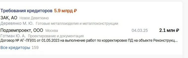 С «АльмакорГруп» 159 кредиторов требуют 5,9 млрд рублей