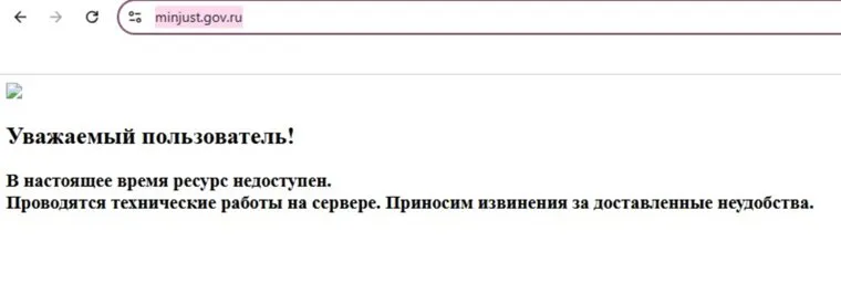 Сайт Минюста РФ оказался недоступен после того, как Госдума приняла закон о штрафах за поиск экстремистских материалов и рекламу VPN. Зайти на официальный ресурс ведомства невозможно из-за технических работ.