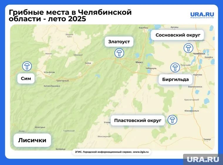 Наибольший урожай лисичек в этом сезоне отмечен вблизи нового водохранилища в Златоусте — грибники уезжают с ведрами урожая. Ящиками собирают и в Сосновском районе, особенно в поселке Биргильда. Богатые на лисички леса — в Пластовском районе и окрестностях Сима.