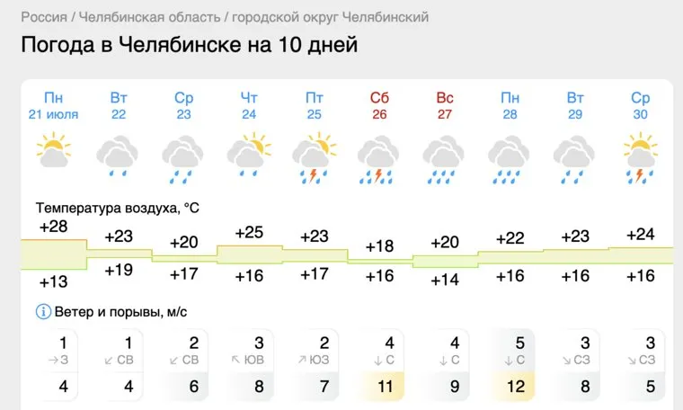 Фото: скрин с сайта «Гисметео» https://www.gismeteo.ru/weather-chelyabinsk-4565/10-days/