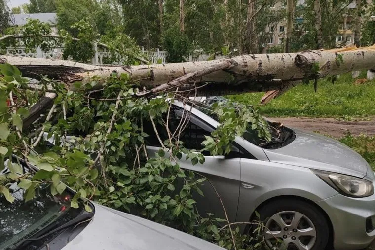 Поваленные деревья падали на линии ЛЭП и стоящие автомобили