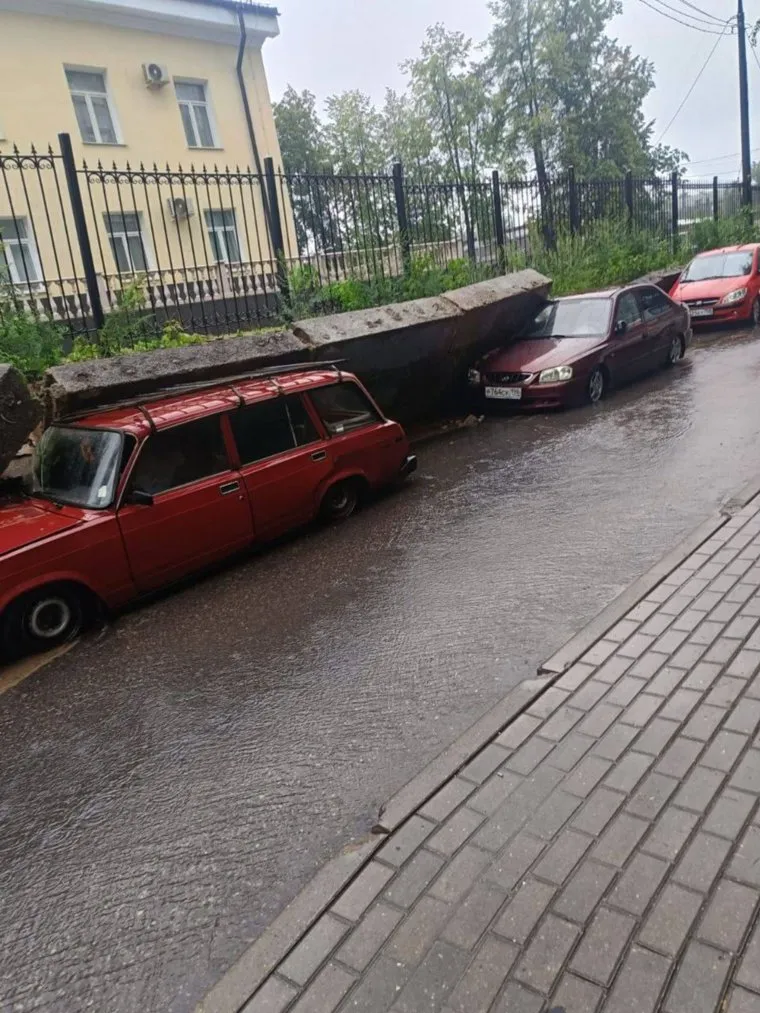 14:30 Машины в Балашихе придавило бетонным забором. Плиты упали из-за непогоды.