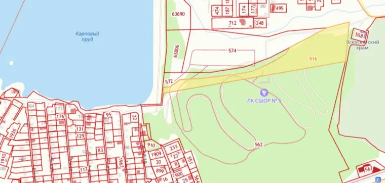 Согласно кадастровой карте, площадь участка в районе Карпового пруда — 26,8 тысячи квадратных метров. Разрешение на строительство — юридическая процедура, необходимая для продолжения прокладки лыжероллерной трассы.