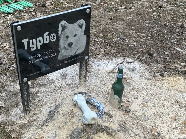 За воротами кладбища в сторону леса уходит узкая тропа. По ней можно выйти к десяткам небольших холмиков. На табличках — клички, даты жизни и надписи: «Турбо. Ноябрь 2023 — 10 декабря 2024. Навсегда в наших сердцах. Помним, любим». Рядом лежит резиновая игрушка.