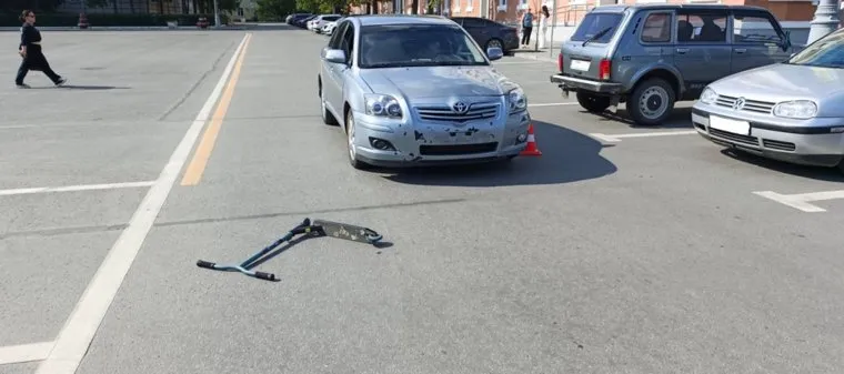 В центре Кургана ребенок на самокате попал под колеса иномарки. Фото
