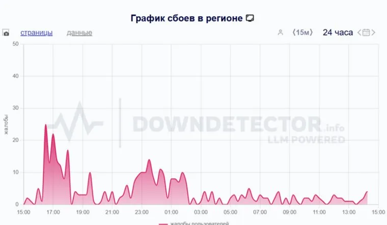 Пик сбоев зафиксирован вечером 23 июля