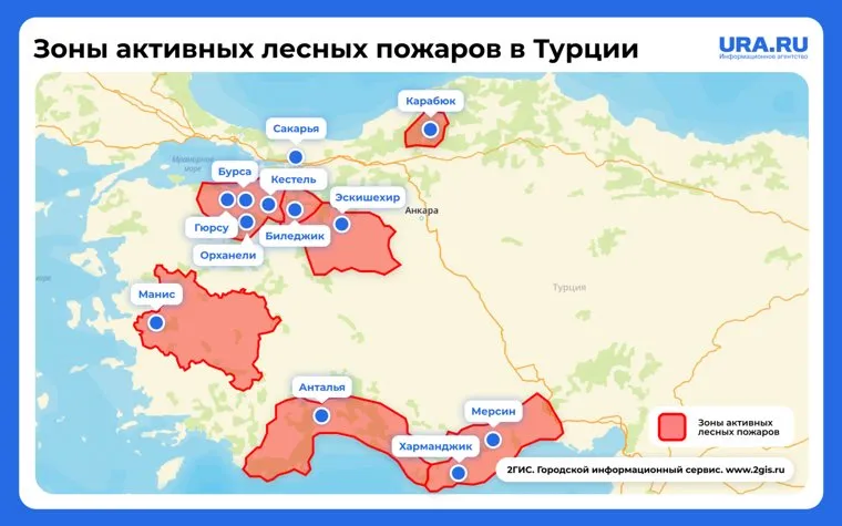 Властям пришлось эвакуировать более 3500 человек. В то же время в популярных среди туристов районах Анталии — Кемере и Газипаше — пожары уже локализованы, и угрозы для отдыхающих нет. Подробнее о ситуации в наиболее пострадавших регионах — в материале URA.RU.