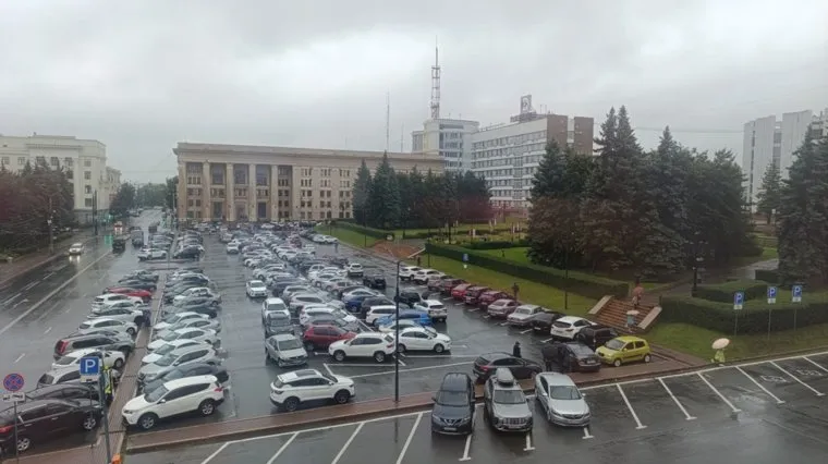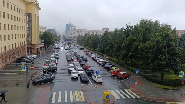 Часть территории площади Революции занимает парковка