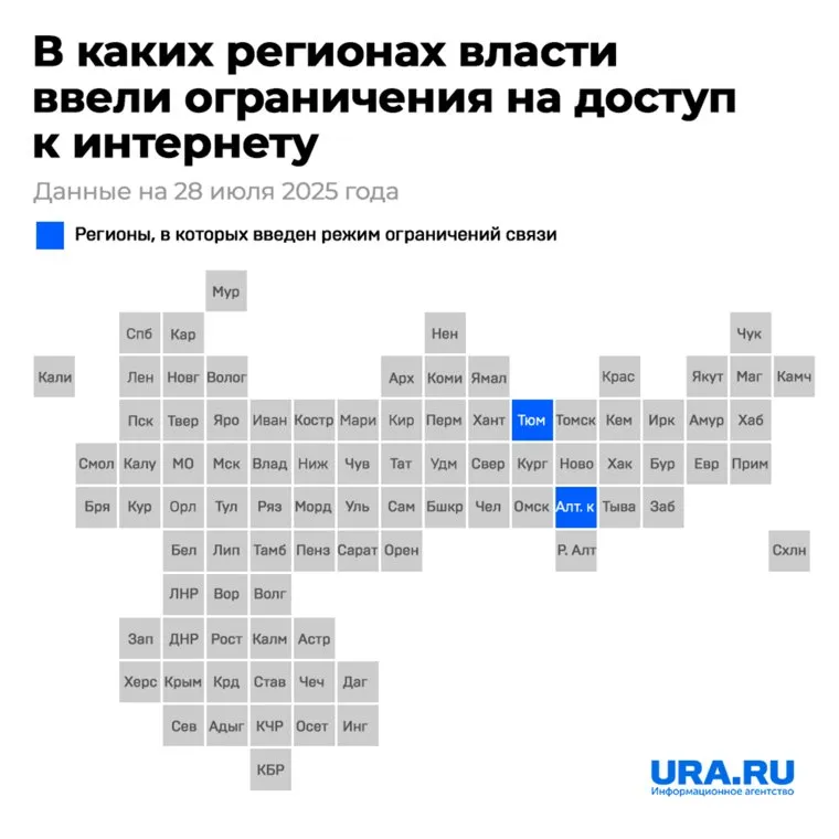 Ограничили работу мобильного интернета и в Алтайском крае. Меры были приняты в связи с изменением оперативной ситуации и необходимостью предотвращения сетевых угроз, сообщила региональная Антитеррористическая комиссия. Ограничения не распространились на проводной интернет, Wi-Fi и голосовую связь.