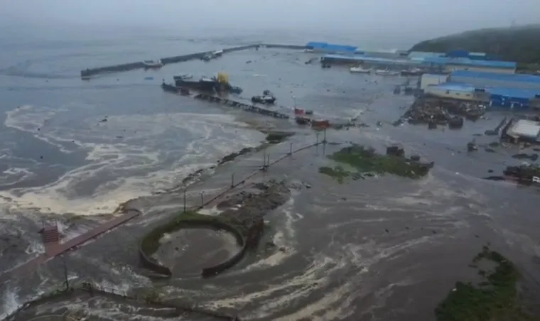 06:50 По данным МЧС, волна местами затопила порт Северо-Курильска. Также подтоплено рыбопромышленное предприятие «Алаид».