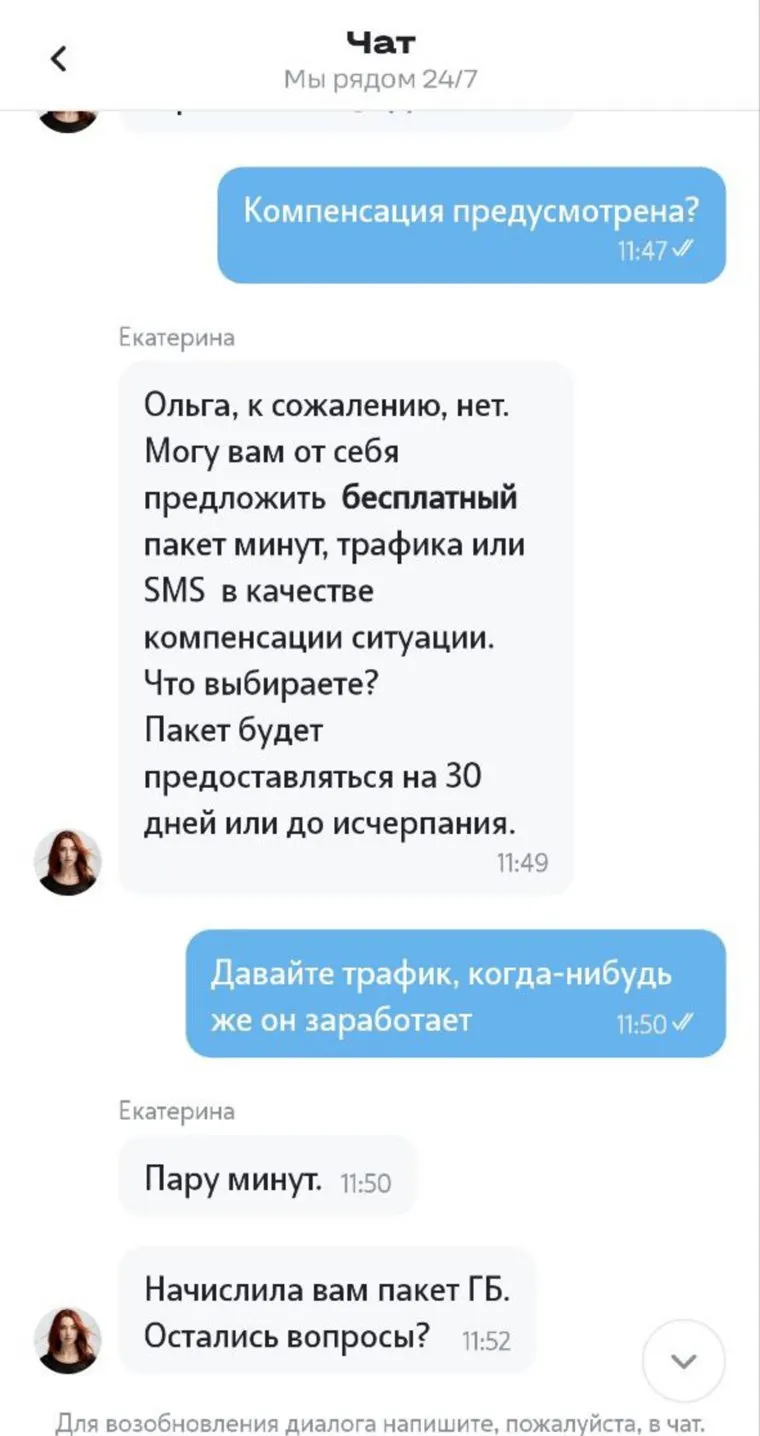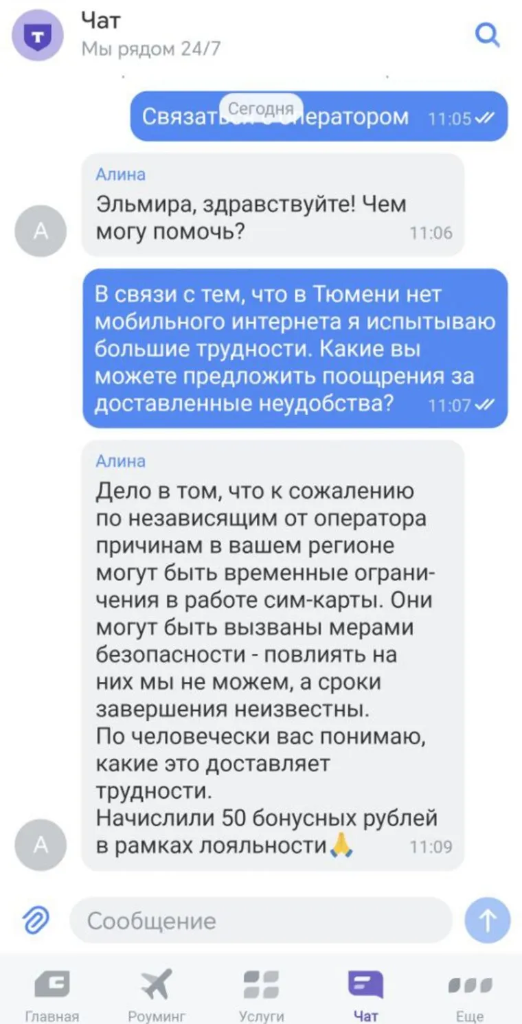 Как тюменцам получить бонусы у сотовых операторов из-за неработающего интернета. Скрин