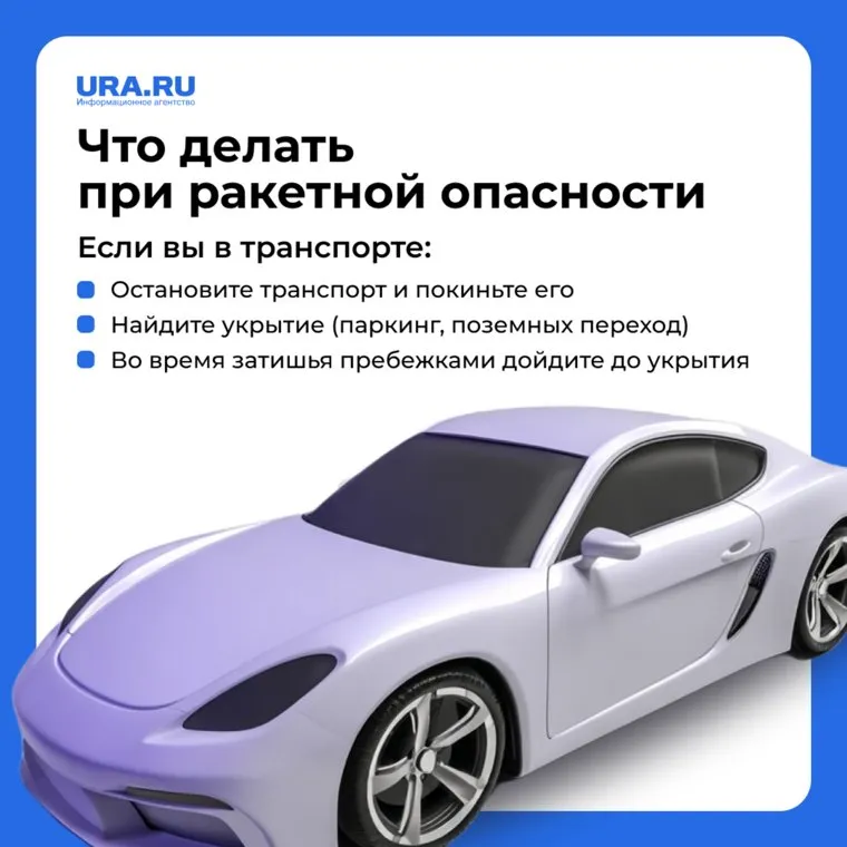 Если при сигнале ракетной опасности вы находитесь в транспортном средстве, но нужно немедленно остановить движение и покинуть его. В случае управления автомобилем остановите его на ближайшем безопасном участке дороги, не создавая помех другим участникам движения. Если вы находитесь в общественном транспорте, обратитесь к водителю с просьбой остановить средство.