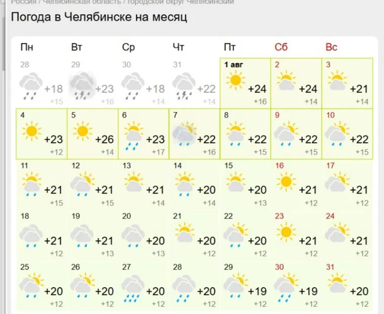 Челябинцам дали прогноз погоды на последний месяц лета