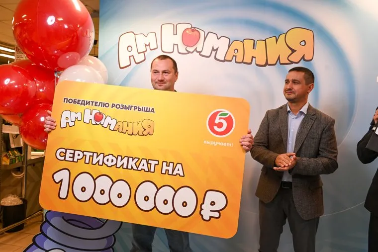 Екатеринбуржец Александр выиграл миллион рублей в акции «Ам Нямания». Результатами розыгрыша поделилась торговая сеть «Пятерочка». Как сообщили URA.RU в пресс-службе компании, участниками становились покупатели, которые прошли все уровни специальной онлайн-игры в мобильном приложении.