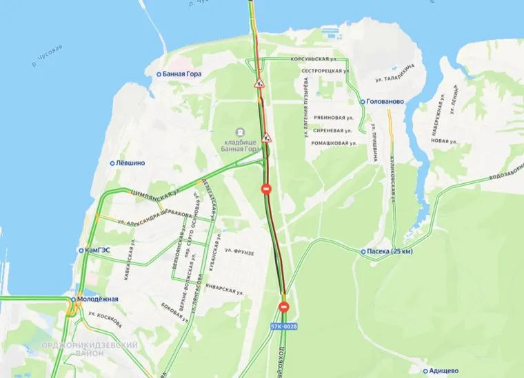 Данные платформы «Яндекс Карты» свидетельствуют, что движение сильно затруднено на Восточном обходе города и на Соликамском тракте. На образование затора также влияют дорожные работы и наличие двух перекрытий трассы.