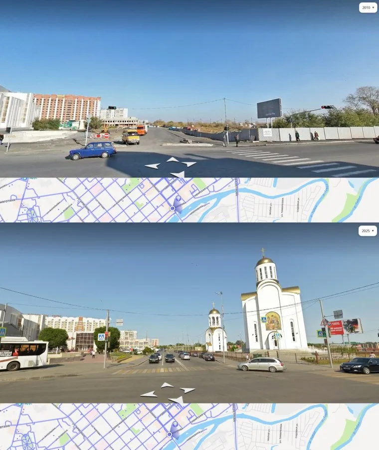 «На панорамах можно увидеть, как изменился Курган за последние 15 лет. За это время снимки обновлялись четыре раза: в 2010, 2018, 2022 и 2025 годах», — сообщил корреспондент URA.RU. Например, сервис Google последний раз обновлял свои панорамы в Кургане в 2019 году.