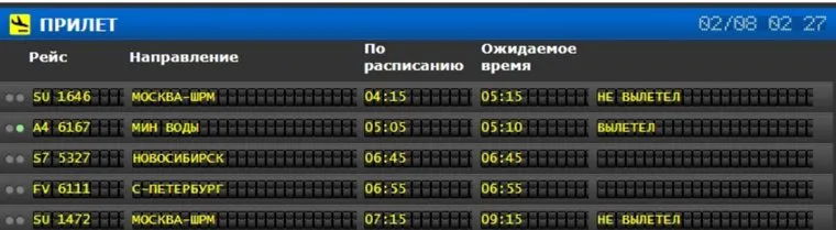 «Рейс SU1646 по маршруту Москва (Шереметьево) — Нижневартовск от 2 августа перенесен. Время прибытия по расписанию — 04:15, расчетное время прибытия 05:15», — сообщается на онлайн-табло югорского аэропорта.