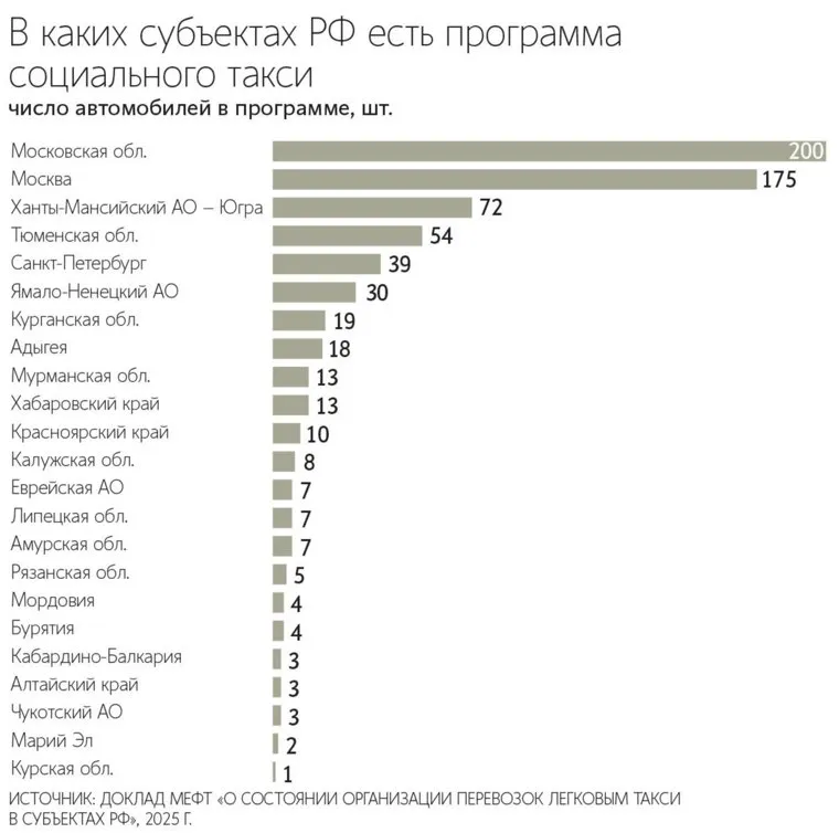 Также в лидерах Тюменская область (54 авто) и Санкт-Петербург (39 машин). Меньше всего автомобилей программы работает в Курской области (один автомобиль), в Марий Эл — два, по три — в Чукотском автономном округе, Алтайском крае и Кабардино-Балкарии. Доклад составлен по итогам 2024 года и будет направлен в органы государственной власти.