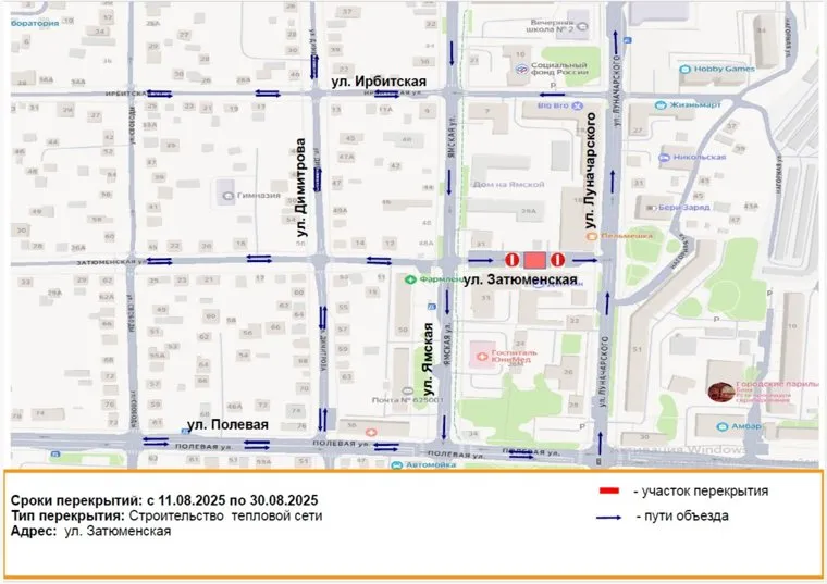 Городские власти предлагают альтернативные маршруты. Для объезда перекрытого участка можно использовать улицы Ямская, Луначарского и Полевая.