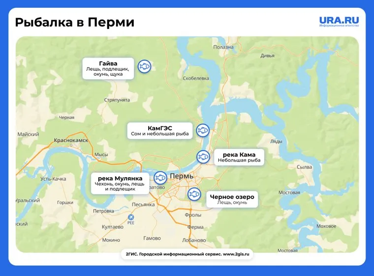 Лучшие места для рыбалки, не выезжая из Перми. Инфографика