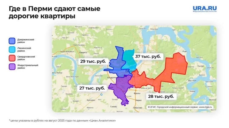 Самые дорогие квартиры в Перми сдаются в Ленинском районе. Средняя стоимость аренды здесь составляет 36 900 рублей, рассказали URA.RU эксперты «Циан.Аналитики».