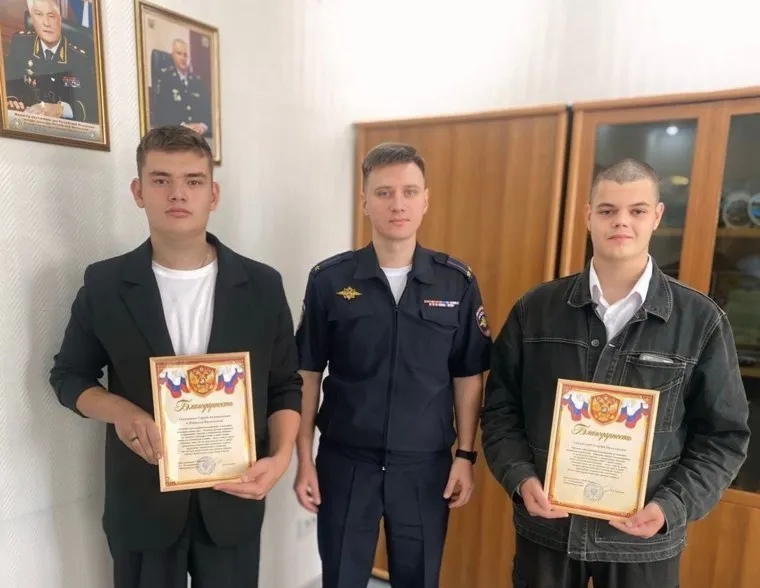 Подполковник полиции Степан Сметанкин выразил благодарность двум школьникам: Арсению Пашкову и Артему Фортуне