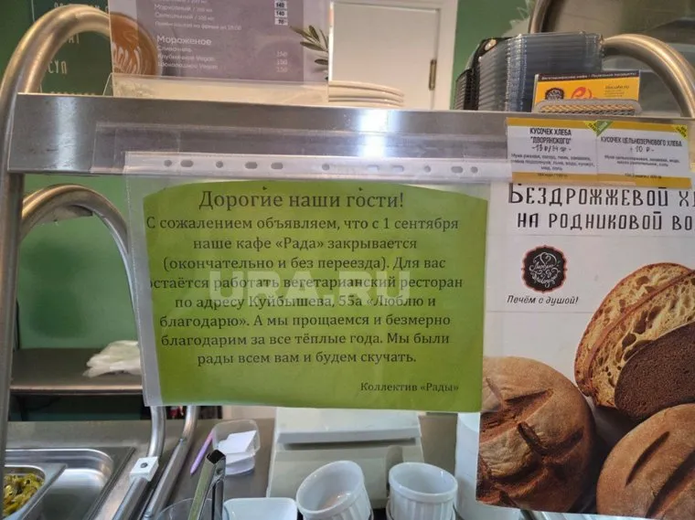 В Екатеринбурге на ул. Вайнера, 8 с 1 сентября закрывается вегетарианское кафе «Рада». В 2013 году это заведение стало первым с такой концепцией в городе.
