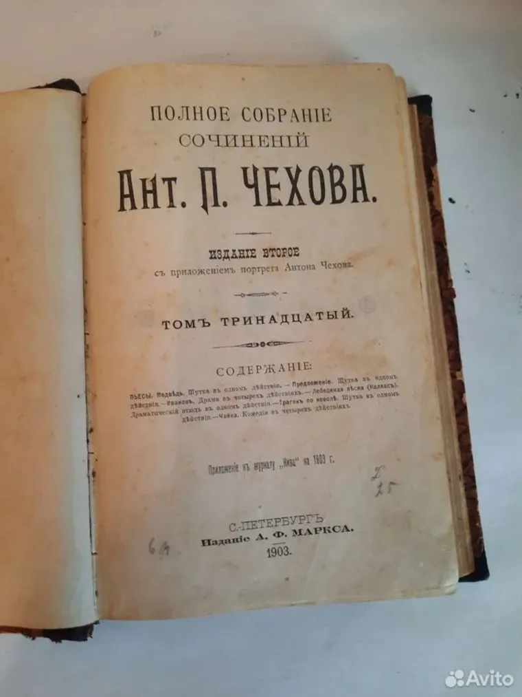 В подборку вошло редкое издание сочинений Антона Павловича Чехова. Оно было выпущено легендарным издательством Адольф Федоровича Маркса. Книге более 120 лет, но кожаный переплет в отличном состоянии.