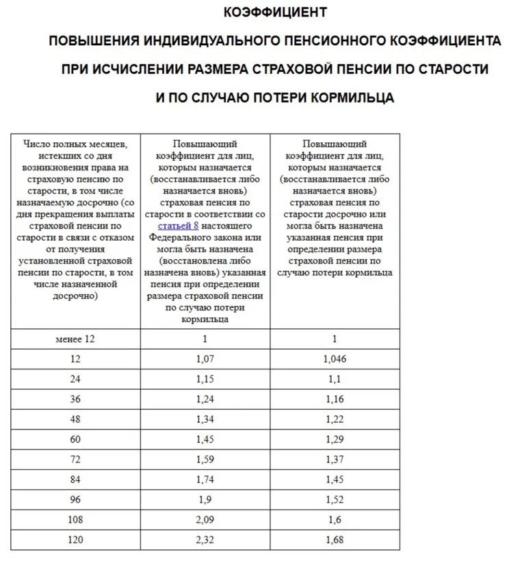 Повышающий коэффициент для увеличения размера страховой пенсии по старости и при потере кормильца