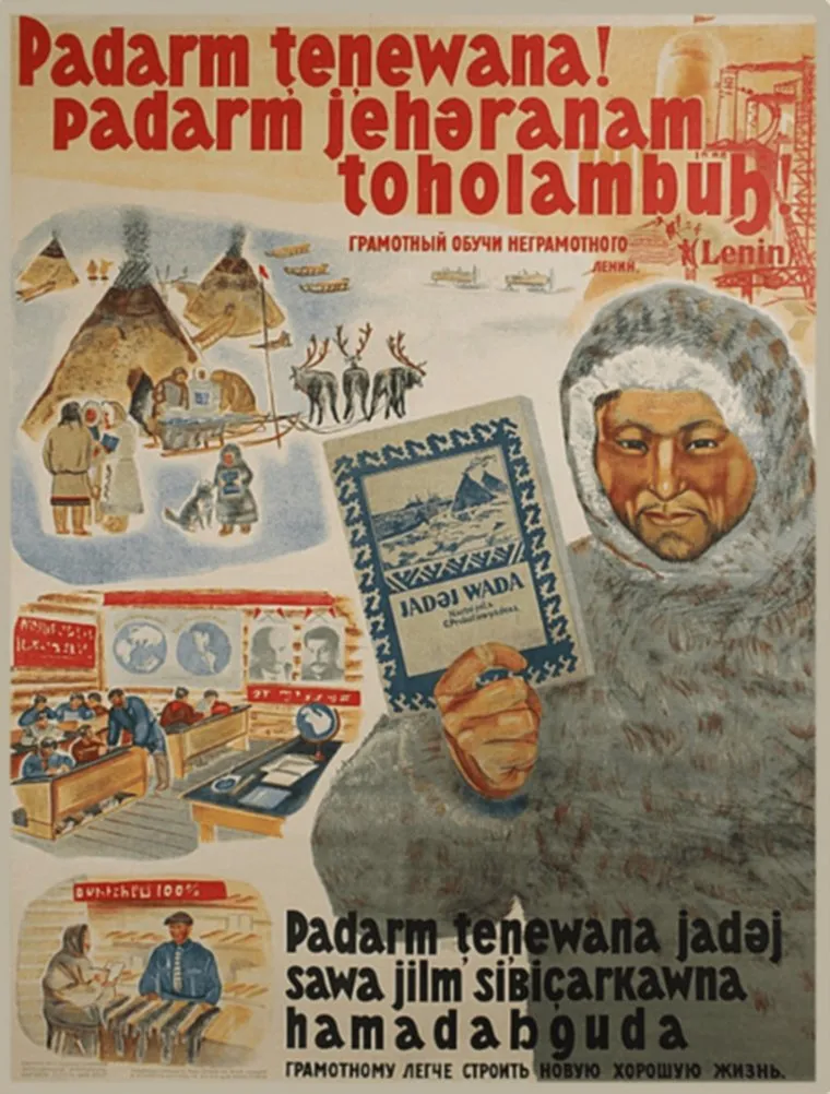 «Грамотный обучи неграмотного» — плакат 1930-х годов на ненецком языке