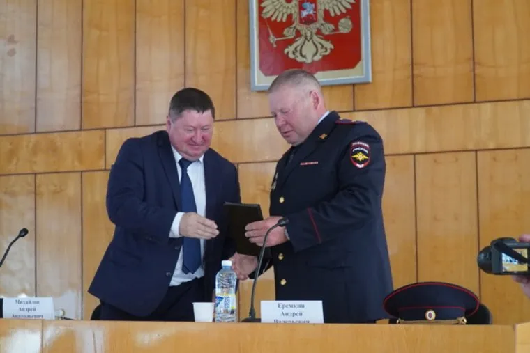 «Сегодня врио начальника управления по работе с личным составом УМВД России по Курганской области полковник полиции Сергей Икрин представил коллективу отделения полиции „Лебяжьевское“ межмуниципального отдела МВД России „Макушинский“ нового руководителя — майора полиции Андрея Еремкина. <...> На торжественном мероприятии в администрации Лебяжьевского муниципального округа, посвященном представлению нового начальника, присутствовали руководители правоохранительных органов и органов местного самоуправления», — пишет ведомство.